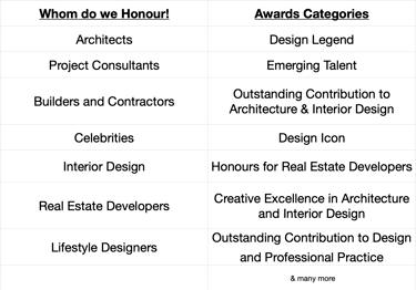 These honours applaud Senior Professionals and also the Young Turks for their finest Creations and Invaluable Contribution to the Architecture and Design Industry.